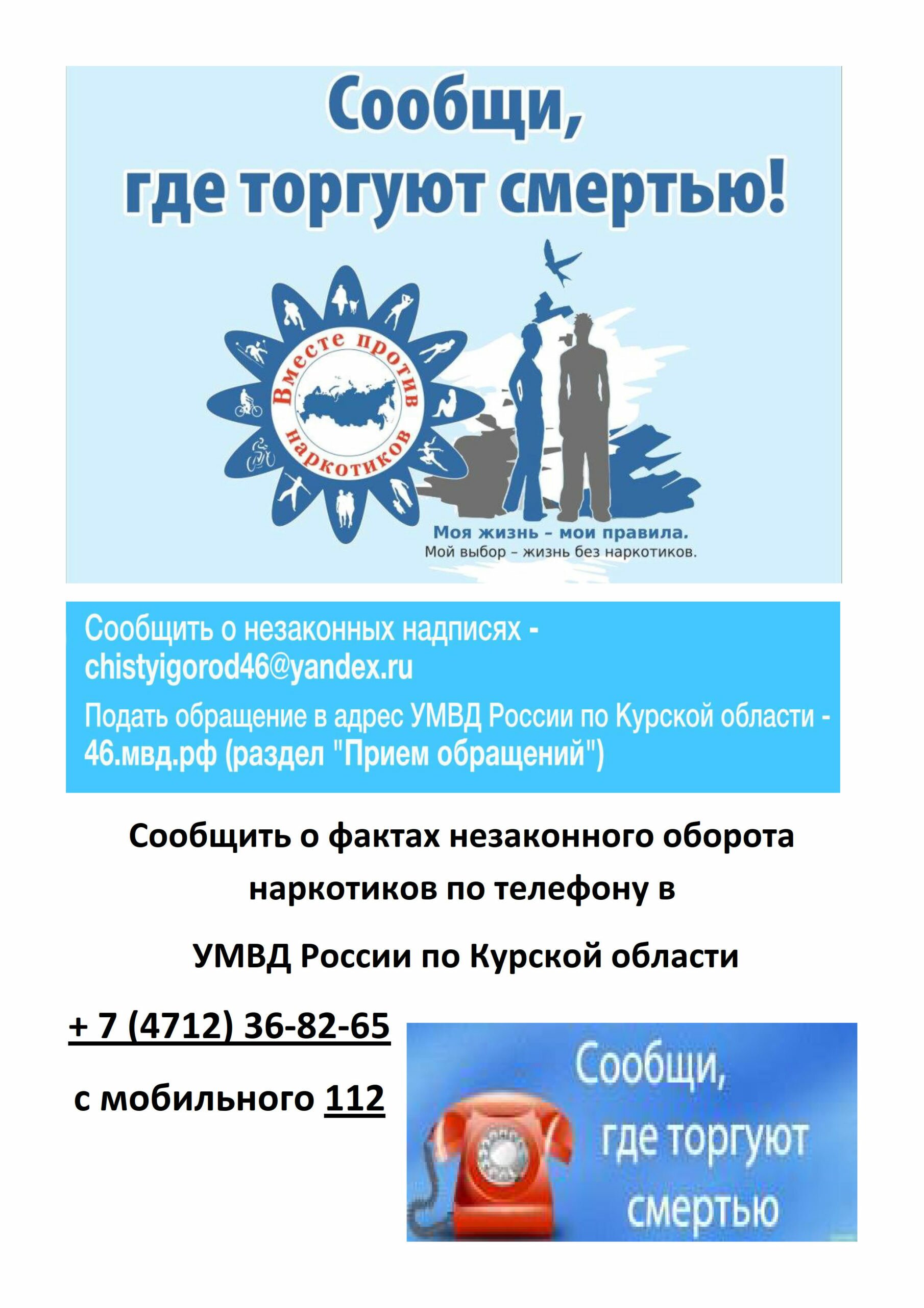 На территории Курской области в период с 12 по 23 марта 2018 года будет проводиться первый этап Общероссийской акции «Сообщи, где торгуют смертью»